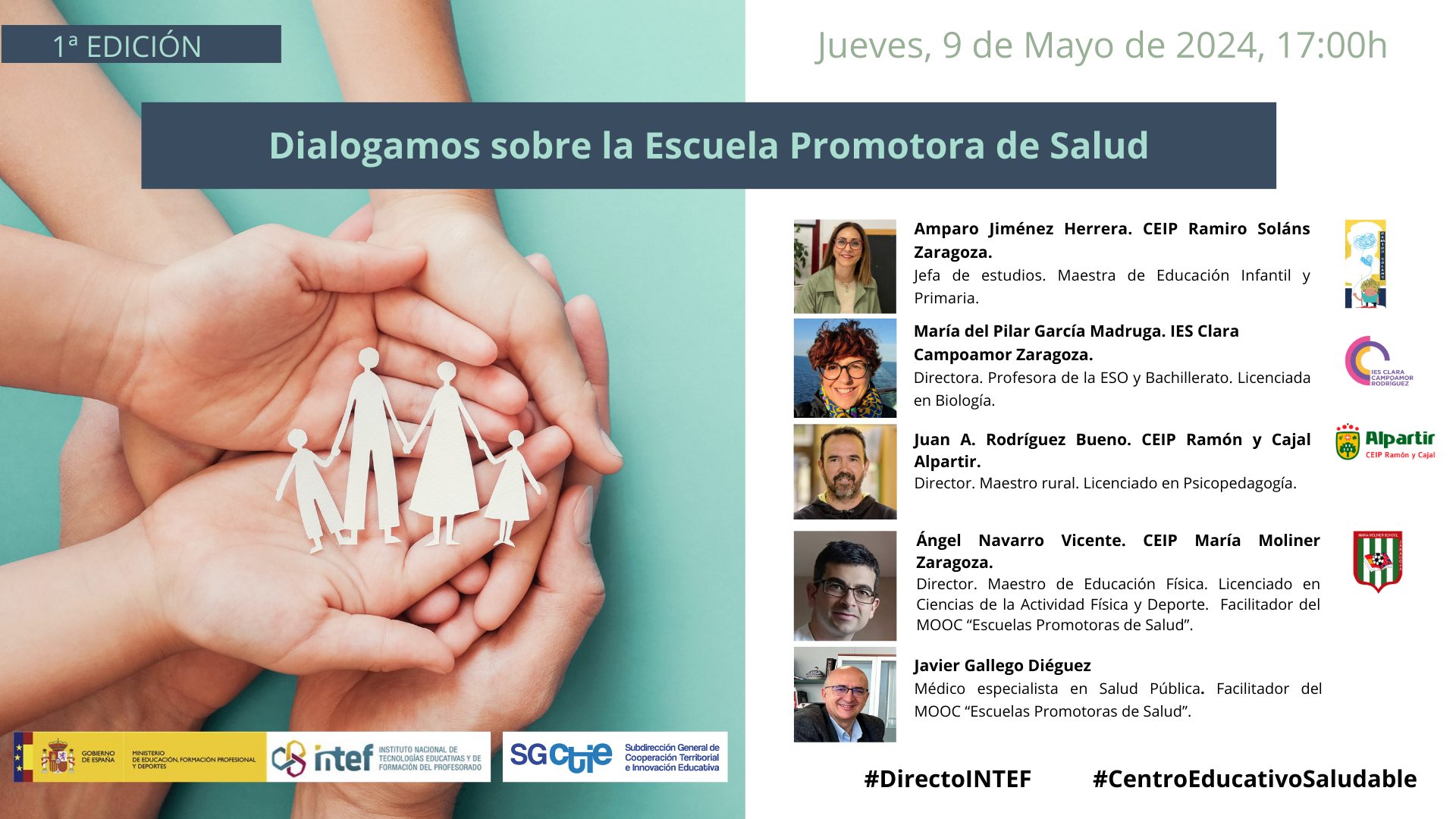 El próximo jueves 9 de mayo a las 17:00 hora peninsular española, tendrá lugar el evento de facilitación de este curso: "Dialogamos sobre la Escuela Promotora de Salud".